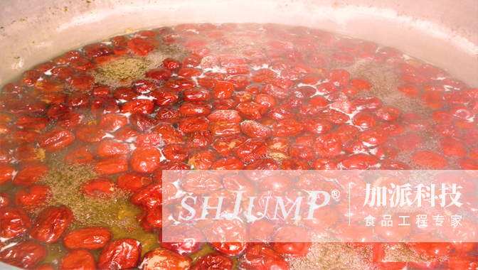 3. Softening pulping: put the processed fruit in the double pot, add about 80% fruit weight or equivalent weight of water, cook for 20~30 minutes, after the fruit softened, take out and pour into the screen diameter of 0.5~ 1.0mm beater beating, remove the skin residue. If not beater, available wood will be fruit, beating plate or wood pole in fine screen, remove skin residue, again add fruit pulp into the double pan, add berry weight 10 ~ 30% of white granulated sugar and a small amount of citric acid (according to the fruit acid content in high and low, usually is 0.3 ~ 0.5%, the weight of the fruit pulp and heat the mixture gently enrichment, pay attention to stir, prevent anxious burnt, Concentrate to thick paste, soluble solid content reached about 20% out of the pot.