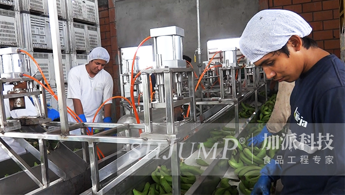Banana pretreatment: more than ninety percent half maturity of banana as raw material, first of all to ripening process, which put a banana in the closed room, the method of smoke or chemical method after cooked, then remove the next subsequent cooked at room temperature, * * * skin into a yellow-green, daily sampling attempts, * * * astringency disappeared the same day or the next day started processing. Before processing, peel the flesh manually and remove the muscles around the flesh with bamboo clip or stainless steel knife. After peeling, put the flesh into a pre-prepared 1% citric acid solution to prevent oxidation and blackening.